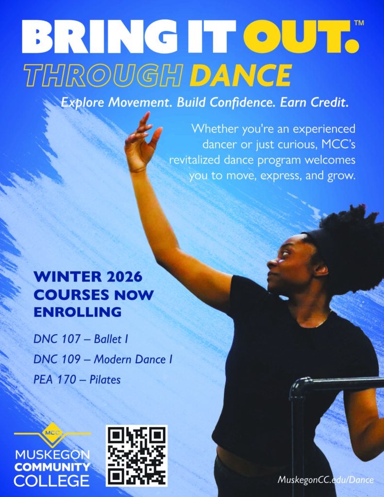 At Muskegon Community College, we believe that dance is for everyone. Regardless of prior experience, our inclusive classes are designed to bring out each student’s unique potential while simultaneously celebrating their growth along the way.