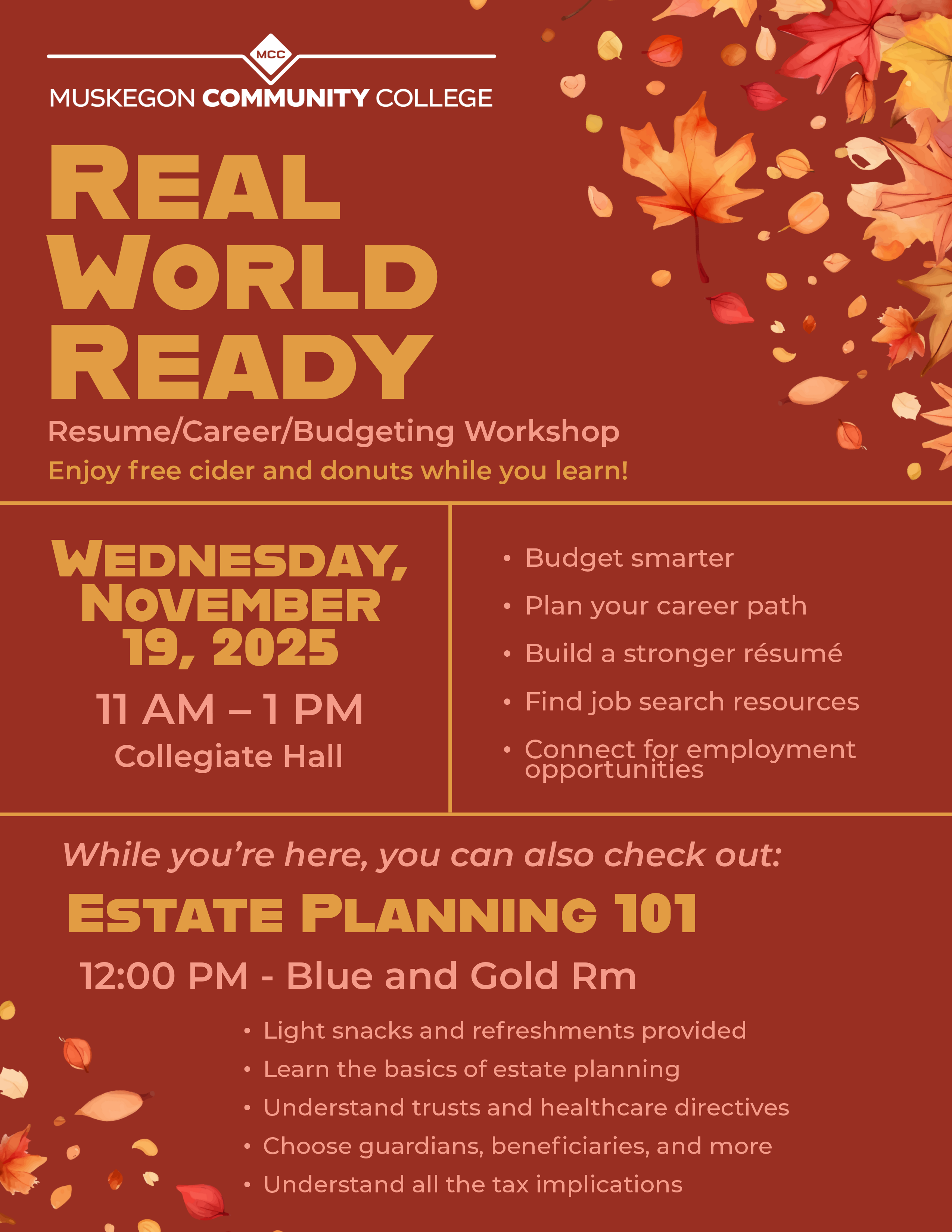 MCC’s Student Life Committee presents: Real World Ready – Career, Resume and Budgeting Workshop!