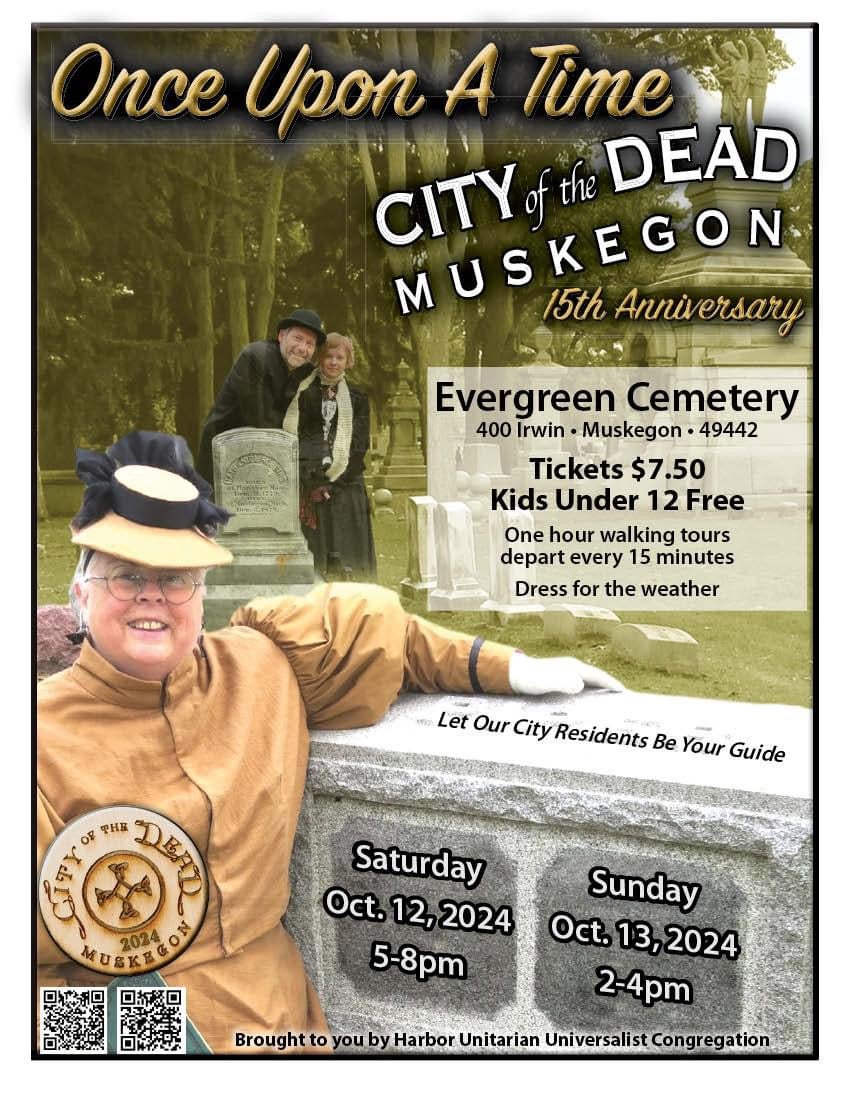 City of the Dead is an annual, family-friendly immersive theater event featuring actors portraying the figures prominent (and not so prominent) from Muskegon history at their burial places in Evergreen Cemetery (391 Irwin Ave.). The event is sponsored by Harbor Unitarian Universalist Congregation.